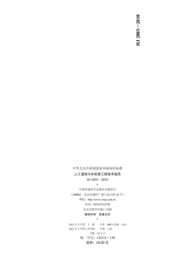 HJ 2005-2010 人工湿地污水处理工程技术规范