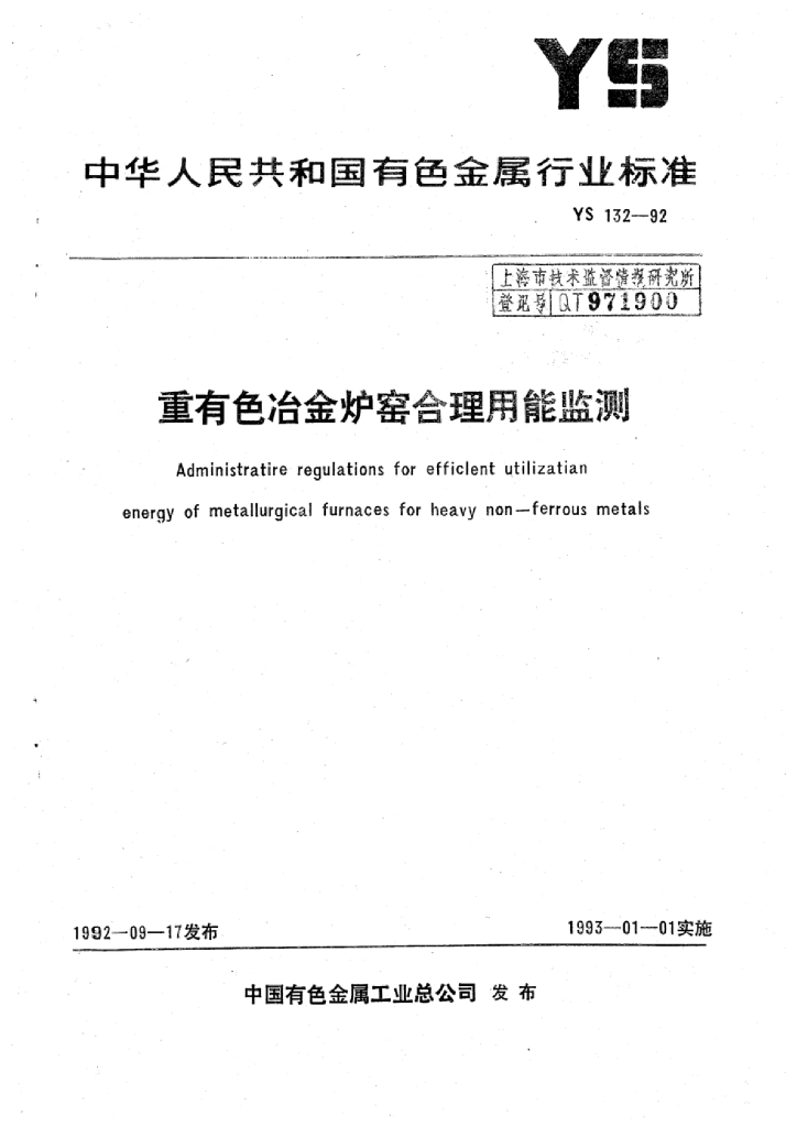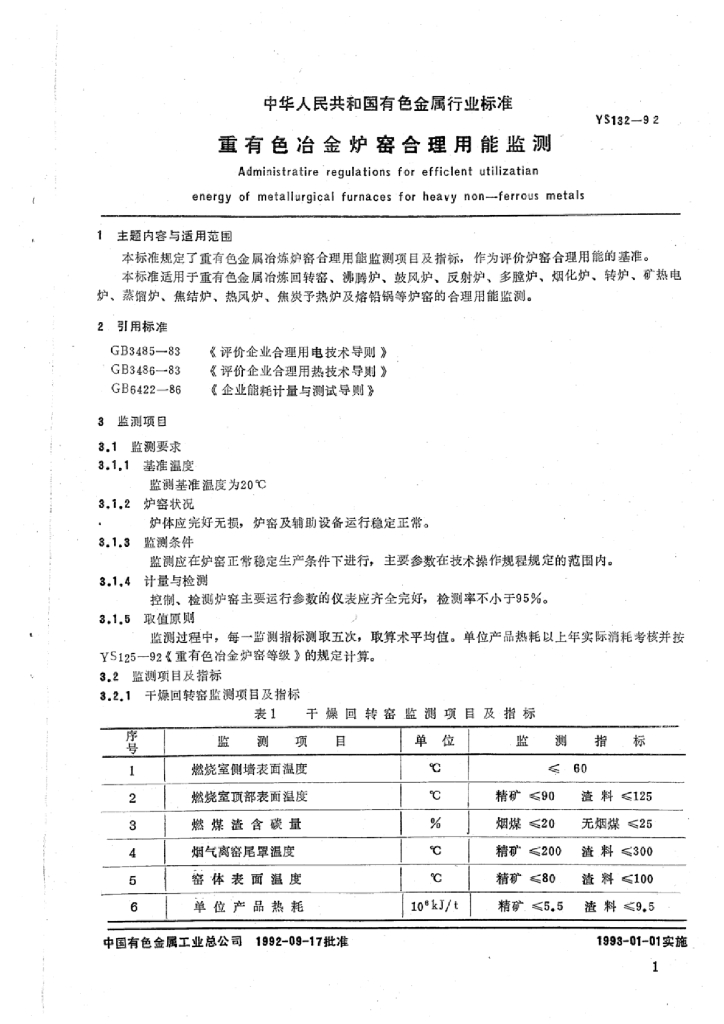 YS/T 132-1992 重有色冶金炉窑合理用能监测