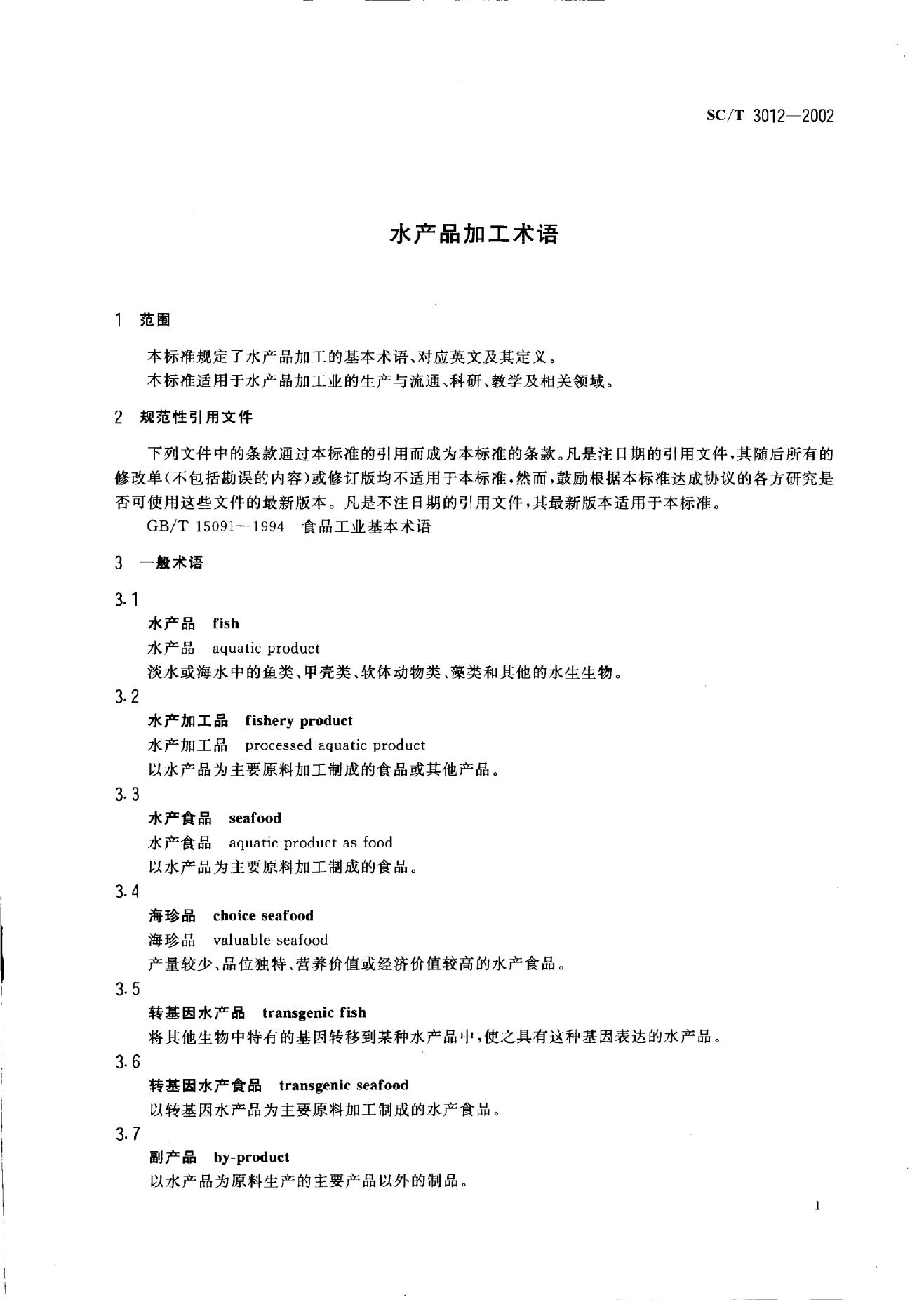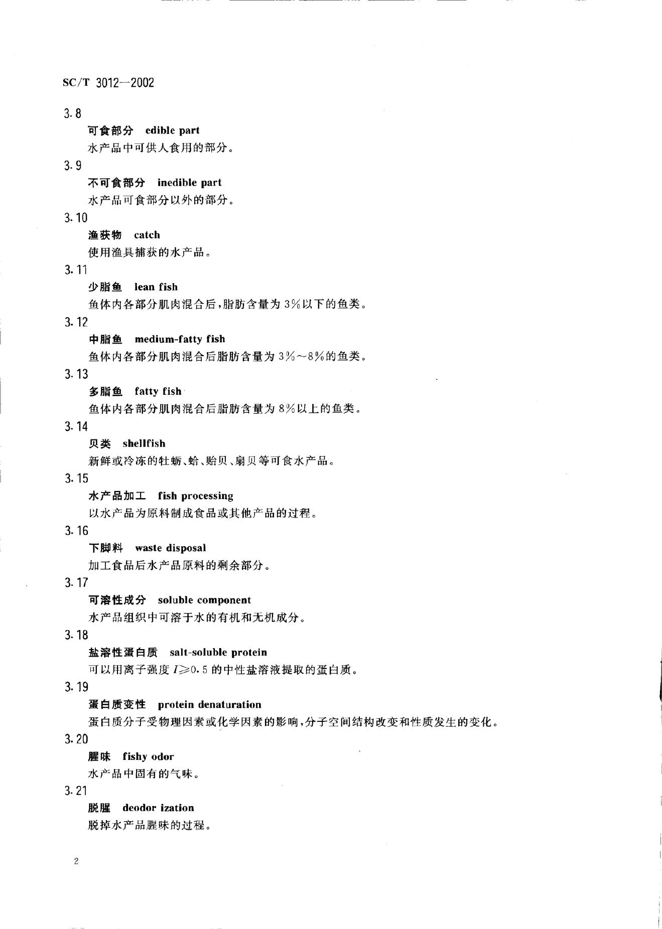 SC/T 3012-2002 水产品加工术语