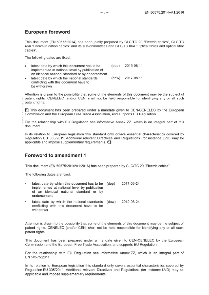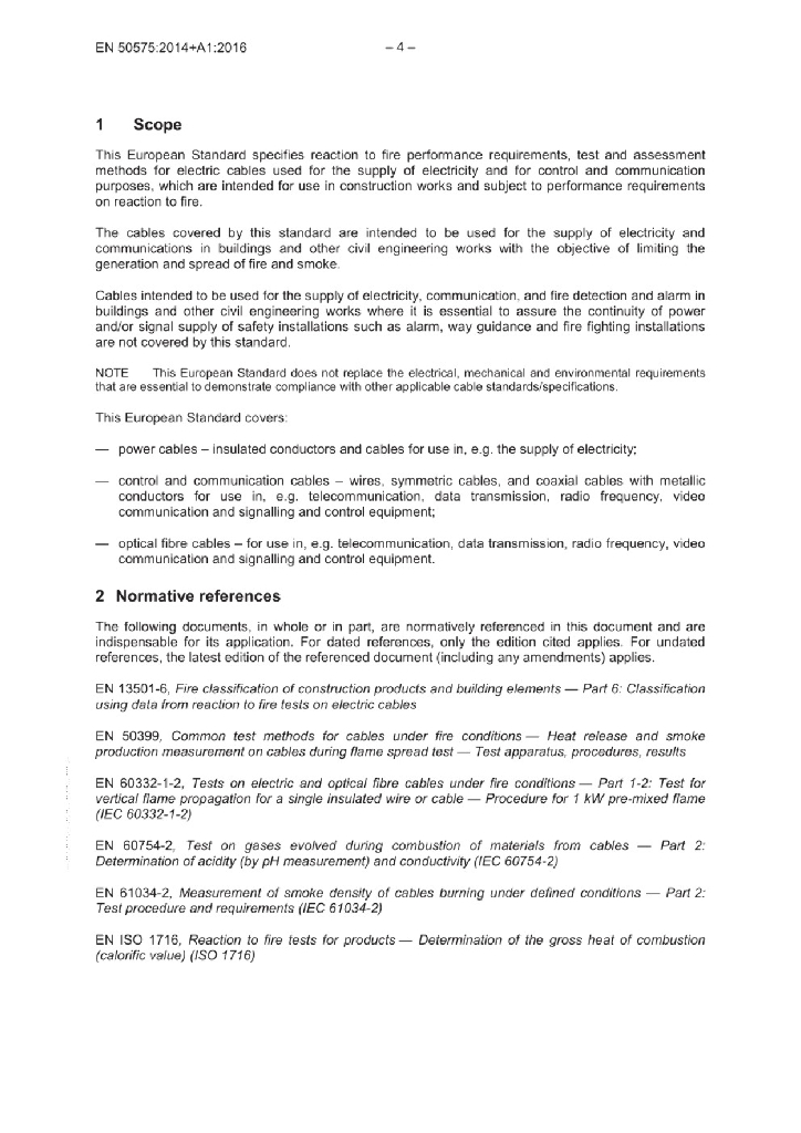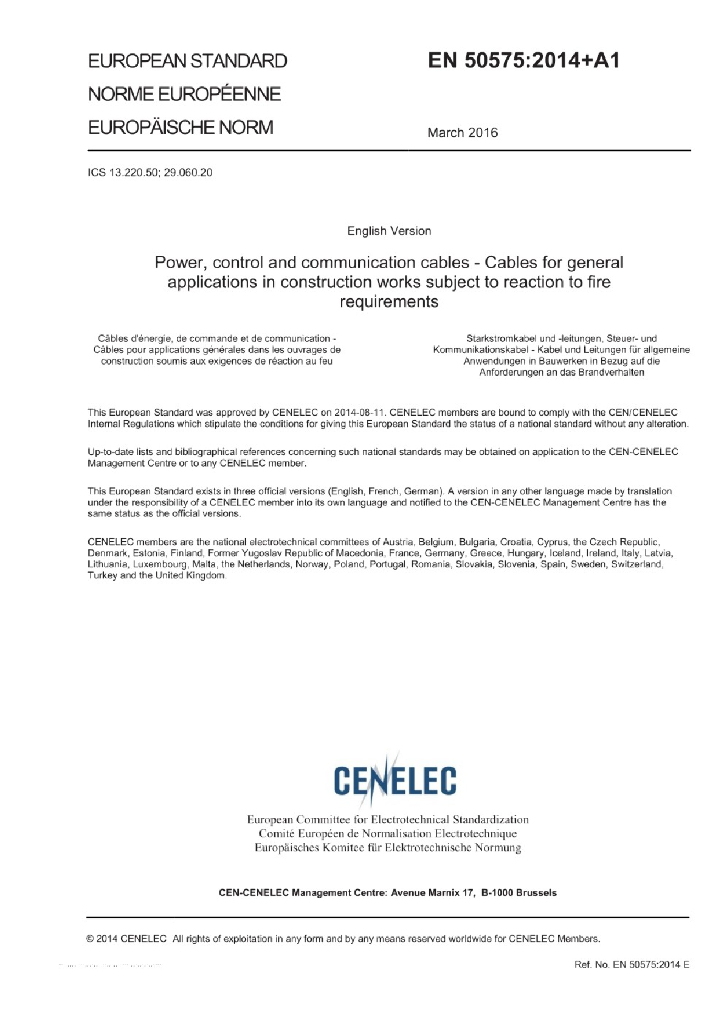 EN 50575:2014+A1:2016 电力、控制和通信电缆-建筑工程中有防火性要求的通用电缆