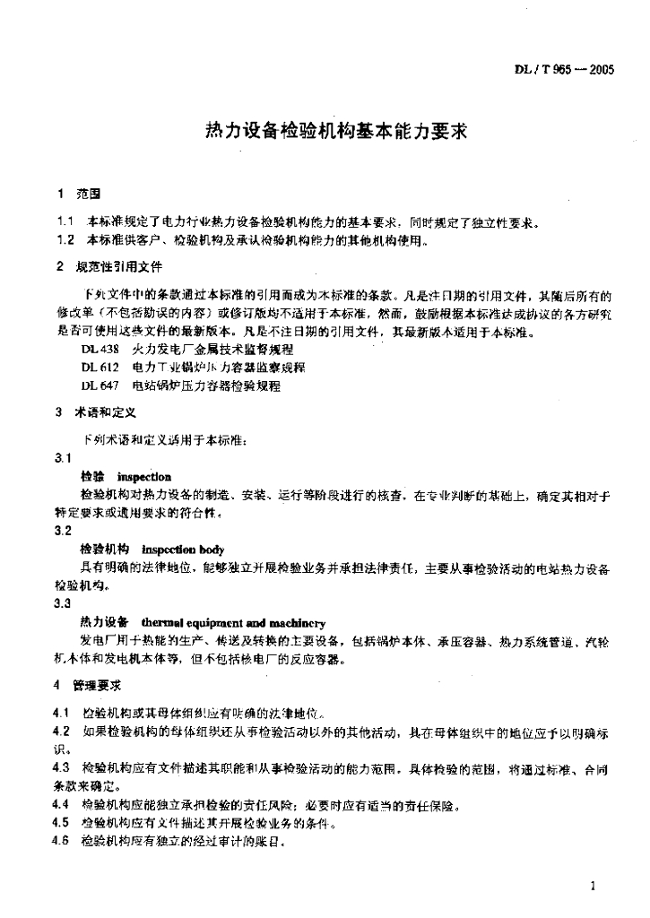 DL/T 965-2005 热力设备检验机构基本能力要求
