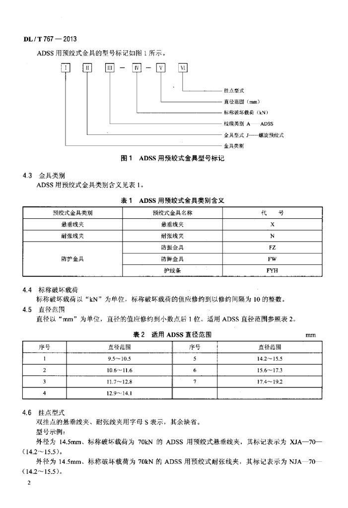 DL/T 767-2013 全介质自承式光缆(ADSS)用预绞式金具技术条件和试验方法