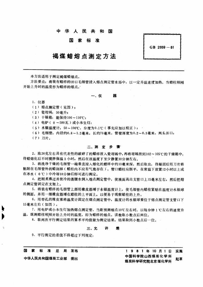 GB/T 2559-1981 褐煤蜡熔点测定方法