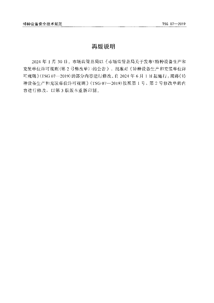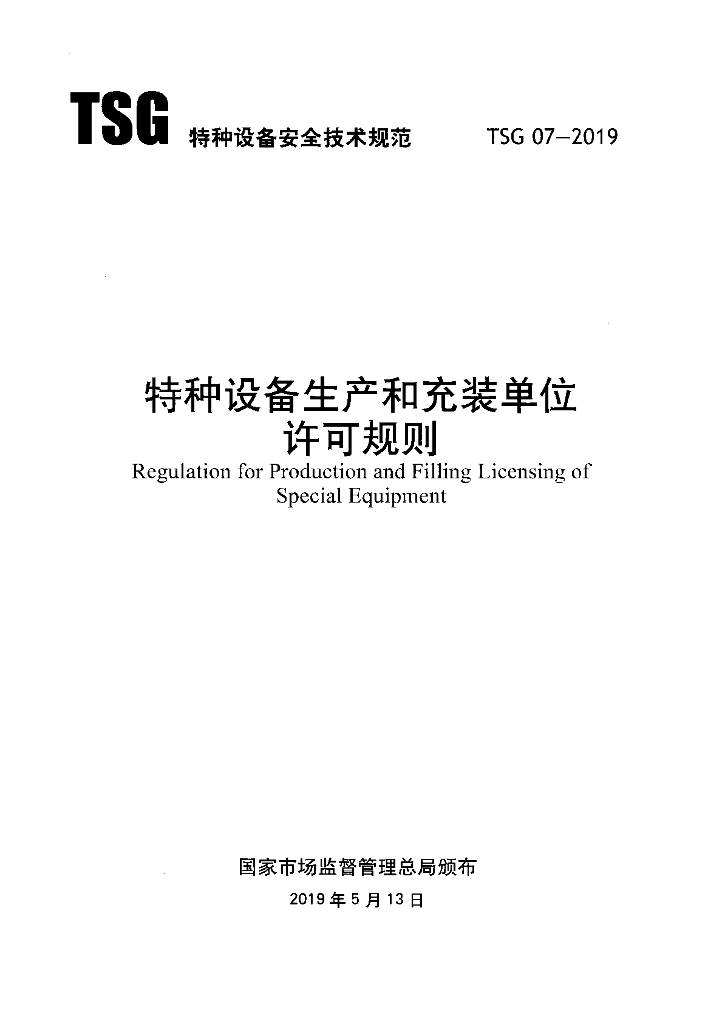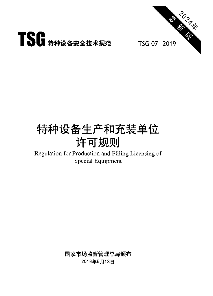 TSG 07-2019 特种设备生产和充装单位许可规则(2024年最新版)