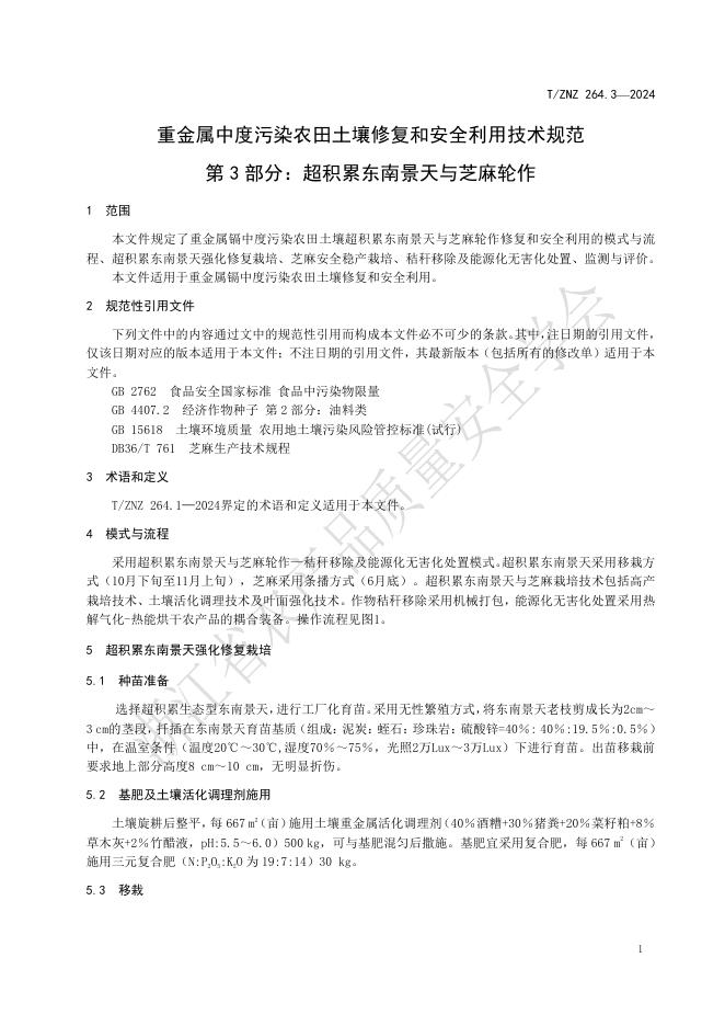 T/ZNZ 264.3-2024 重金属中度污染农田土壤修复和安全利用技术规范 第3部分:超积累东南景天与芝麻