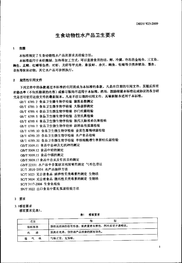 DB35/T 925-2009 生食动物性水产品卫生要求