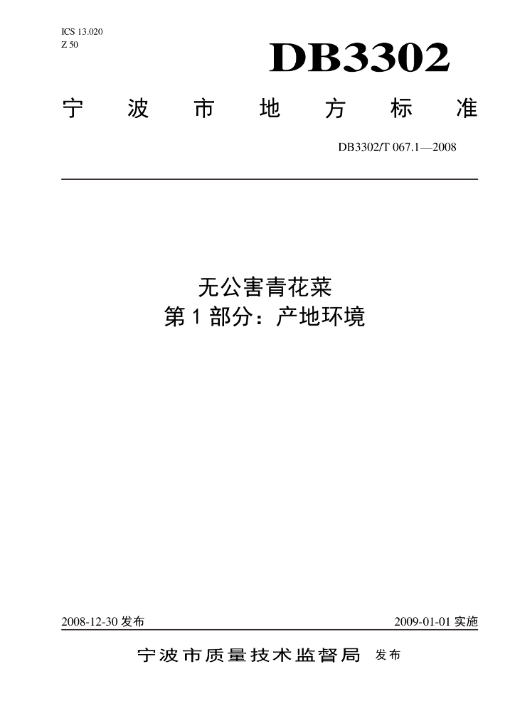 DB3302/T 067.1-2008 无公害青花菜 第1部分:产地环境