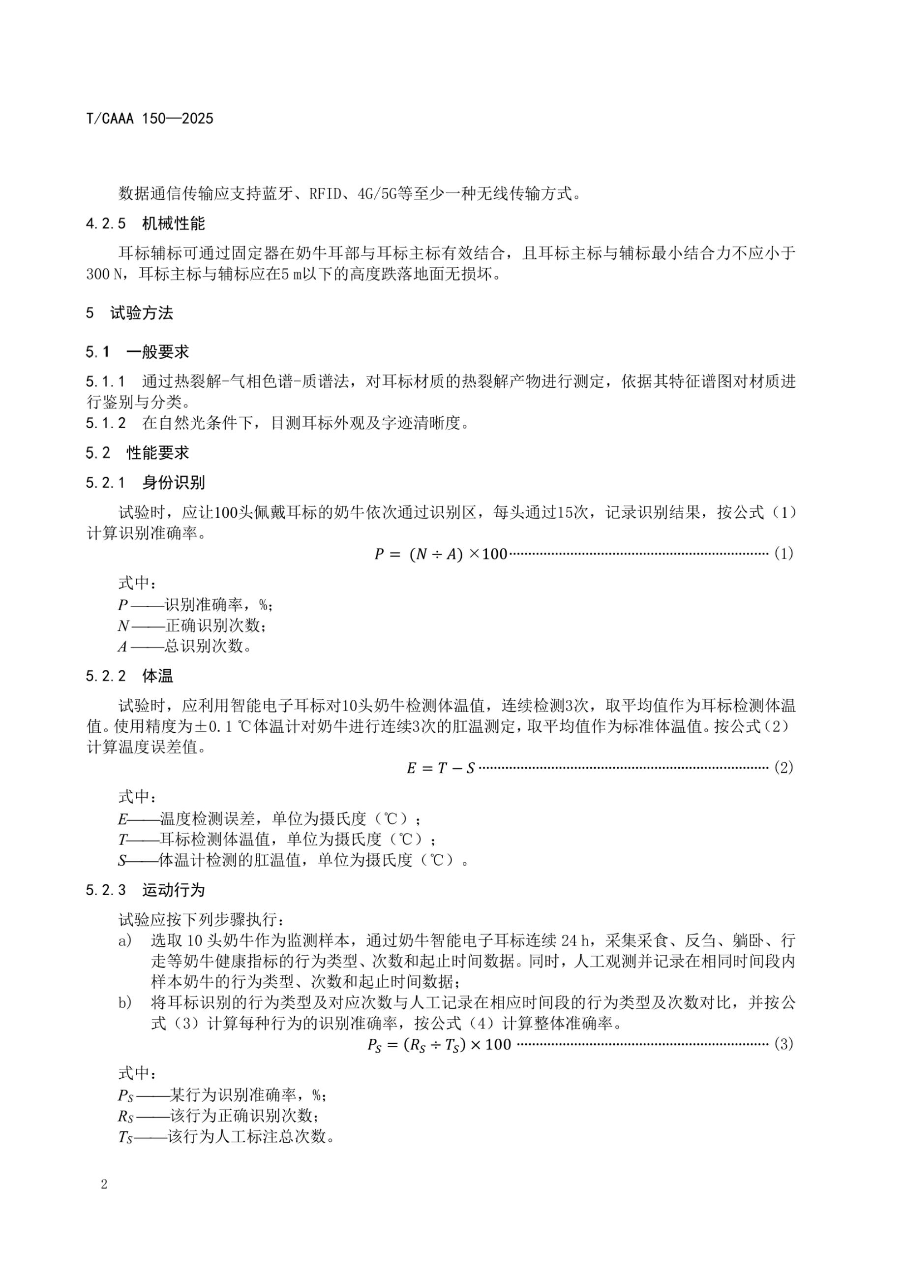 T/CAAA 150-2025 奶牛智能电子耳标技术要求
