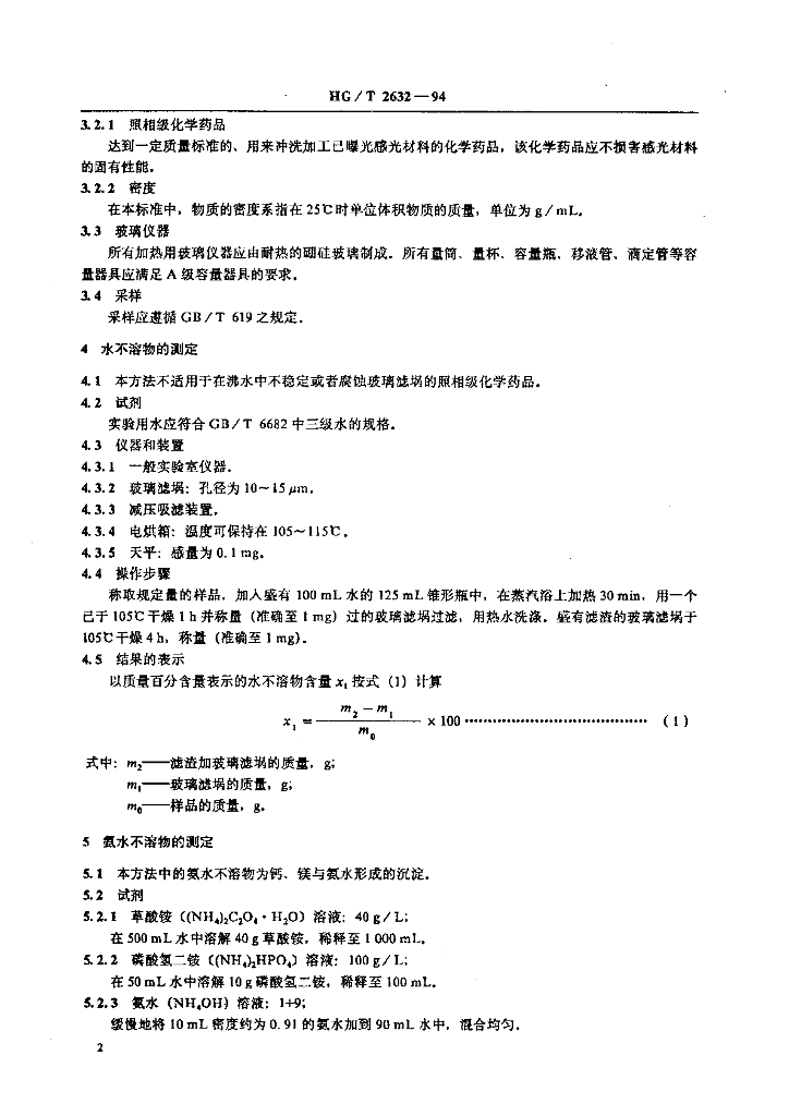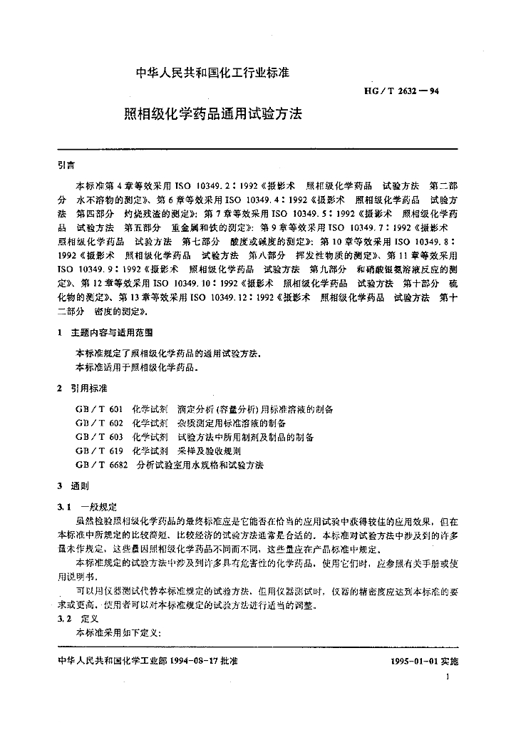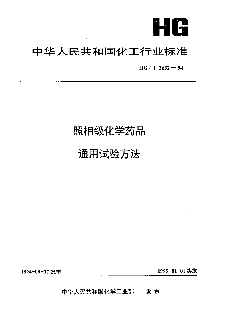 HG/T 2632-1994 照相级化学药品通用试验方法