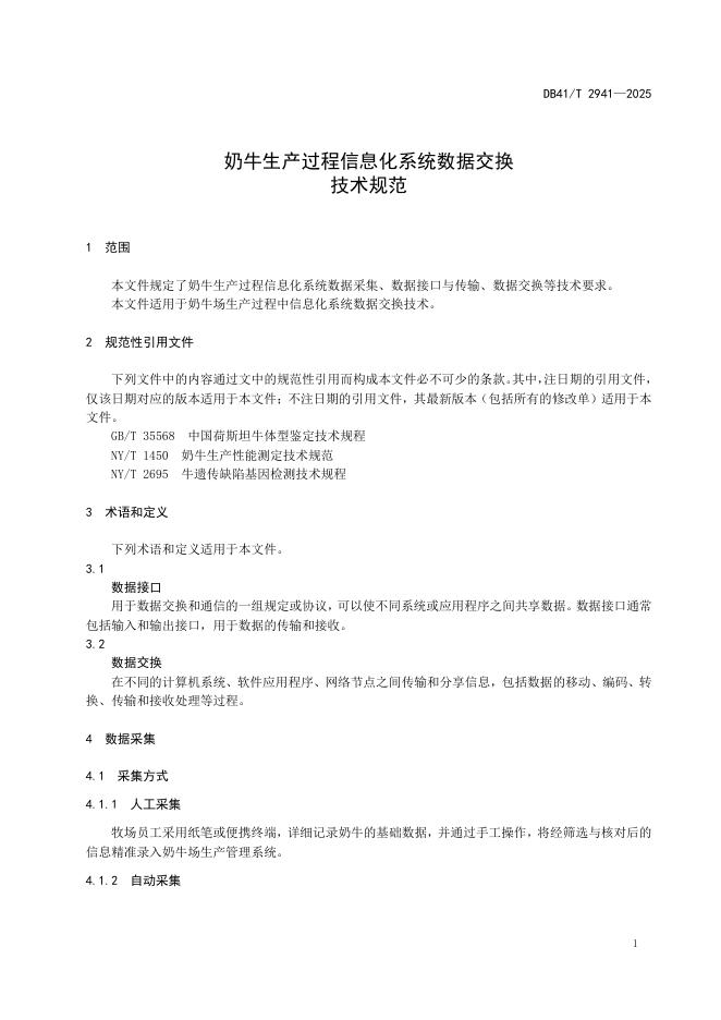 DB41/T 2941-2025 奶牛生产过程信息化系统数据交换技术规范