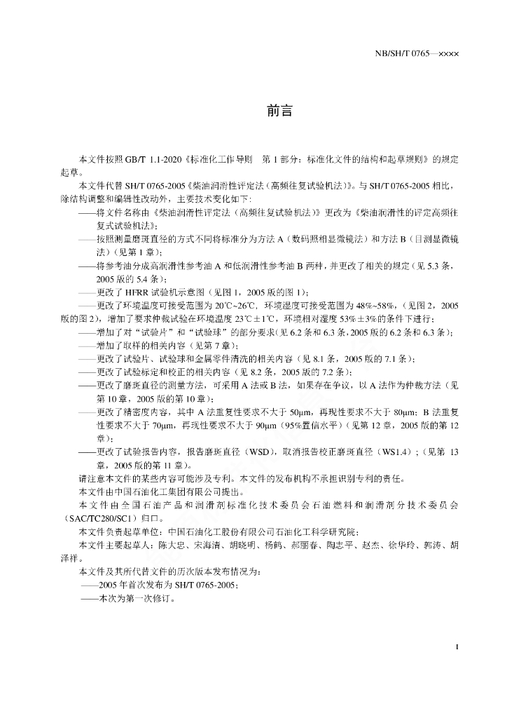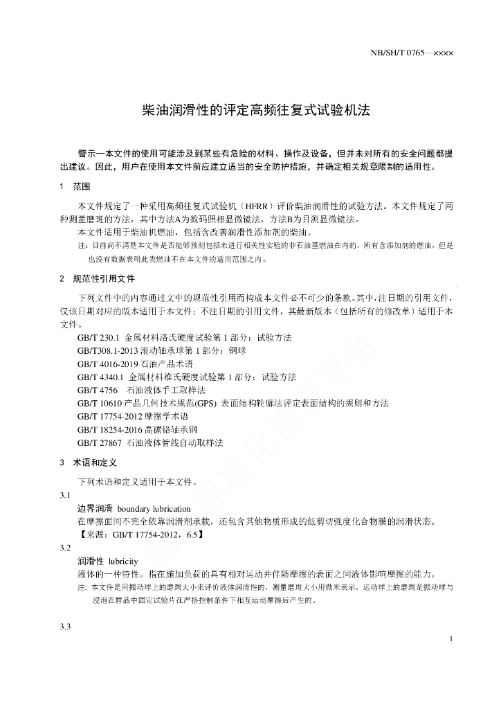 NB/SH/T 0765-2021 柴油润滑性的评定 高频往复式试验机法