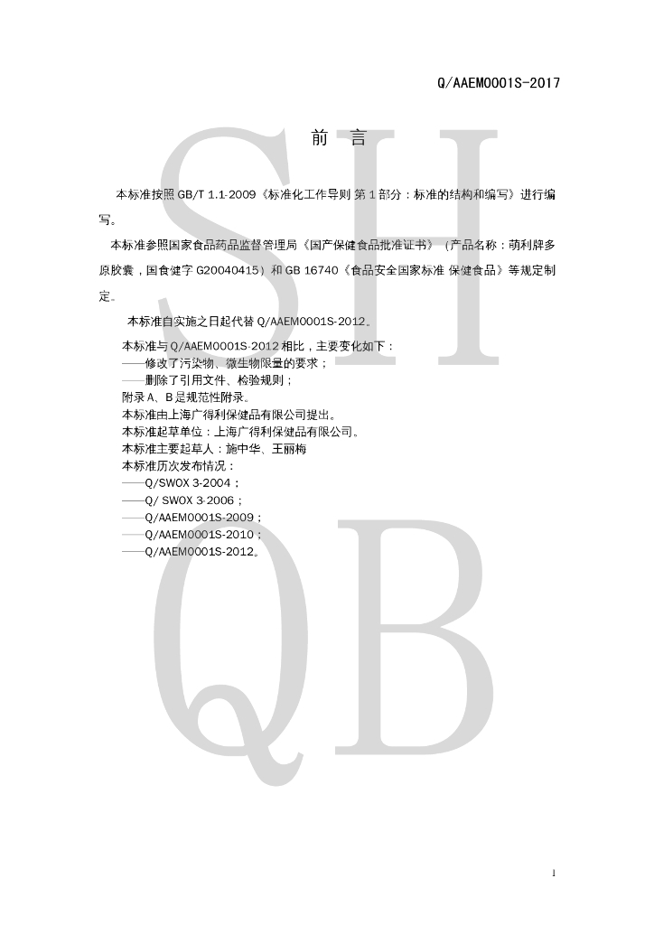 Q/AAEM 0001S-2017 萌利牌多原胶囊