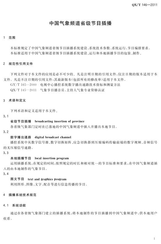 QX/T 146-2011 中国气象频道省级节目插播