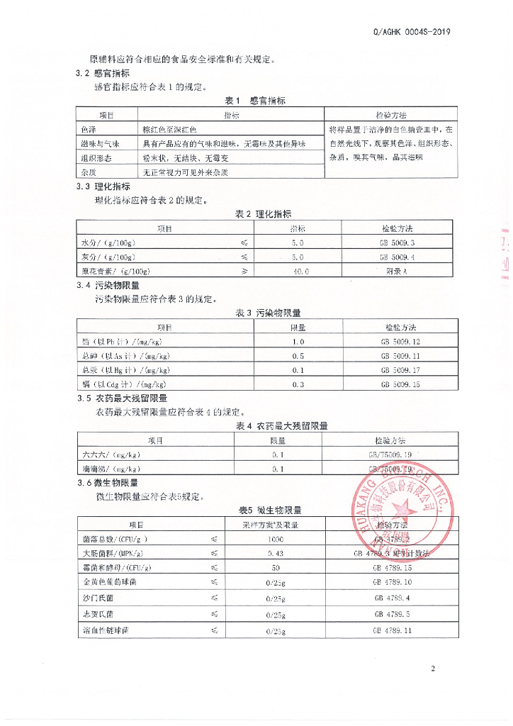 Q/AGHK 0004S-2019 保健食品原料 葡萄籽提取物