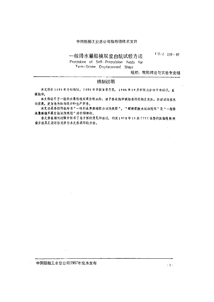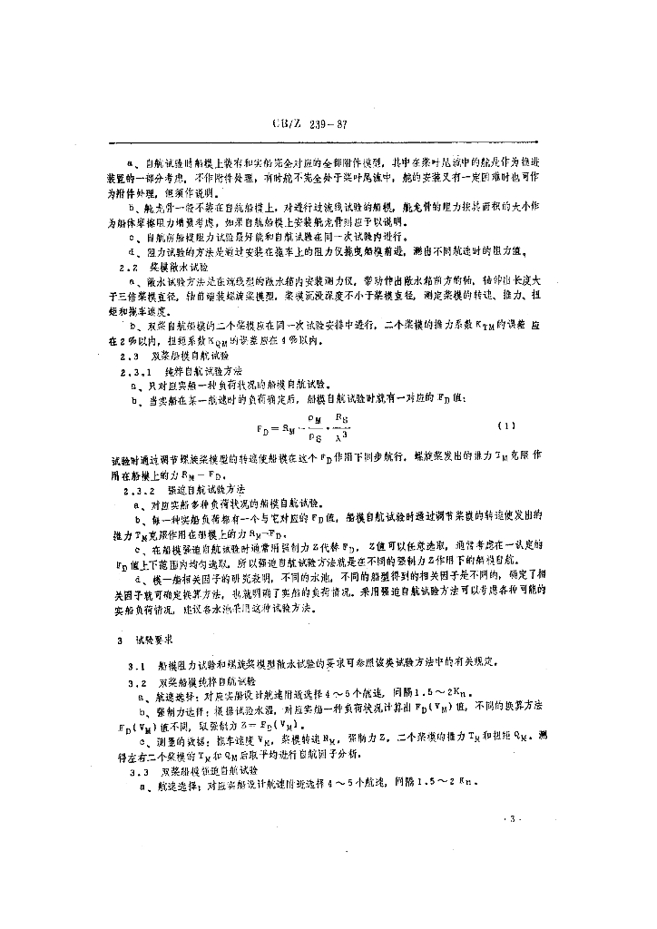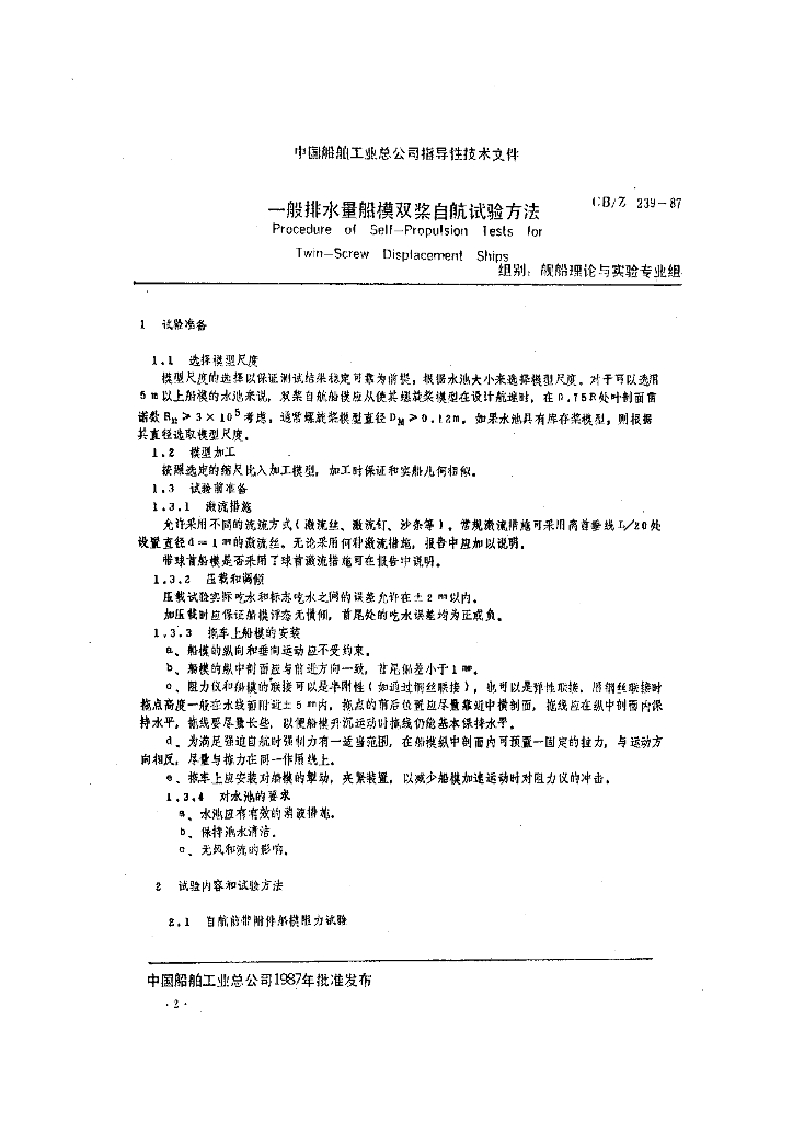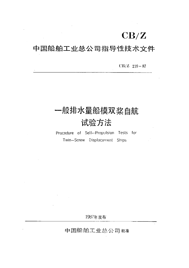 CB/Z 239-1987 一般排水量船模双桨自航试验方法
