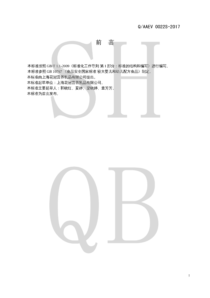 Q/AAEV 0022S-2017 幼儿配方乳粉(Ⅰ型)