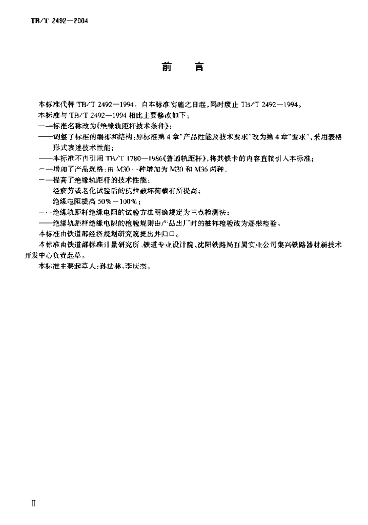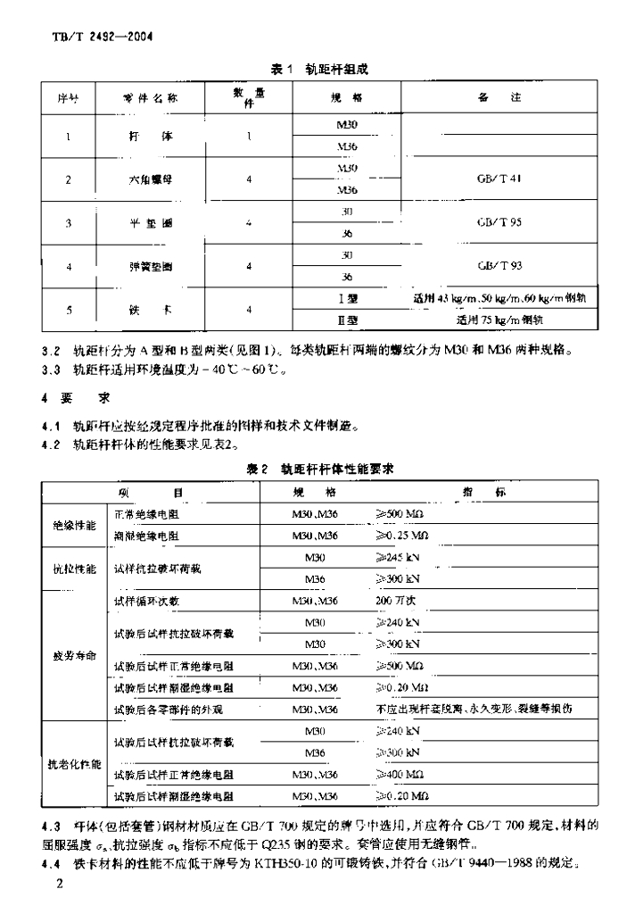 TB/T 2492-2004 绝缘轨距杆技术条件