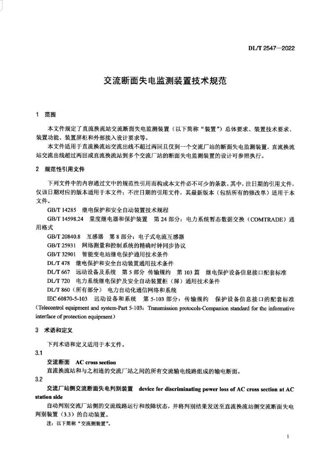 DL/T 2547-2022 交流断面失电监测装置技术规范
