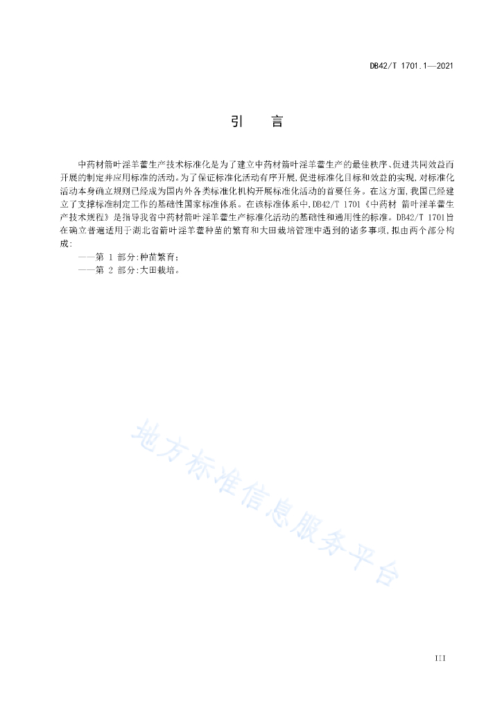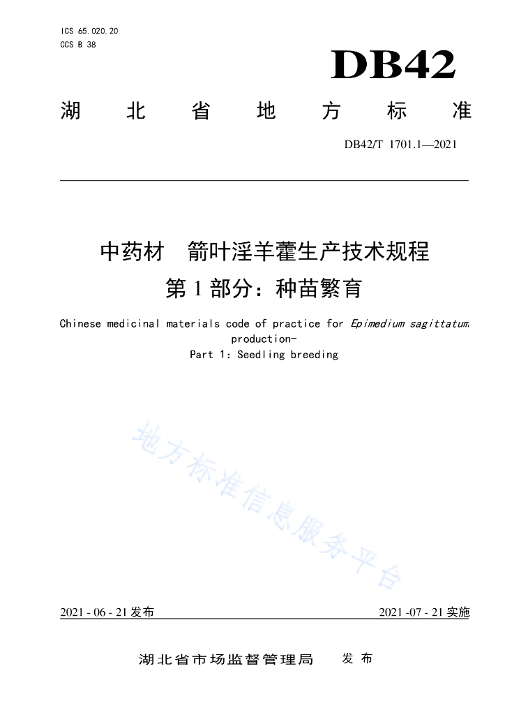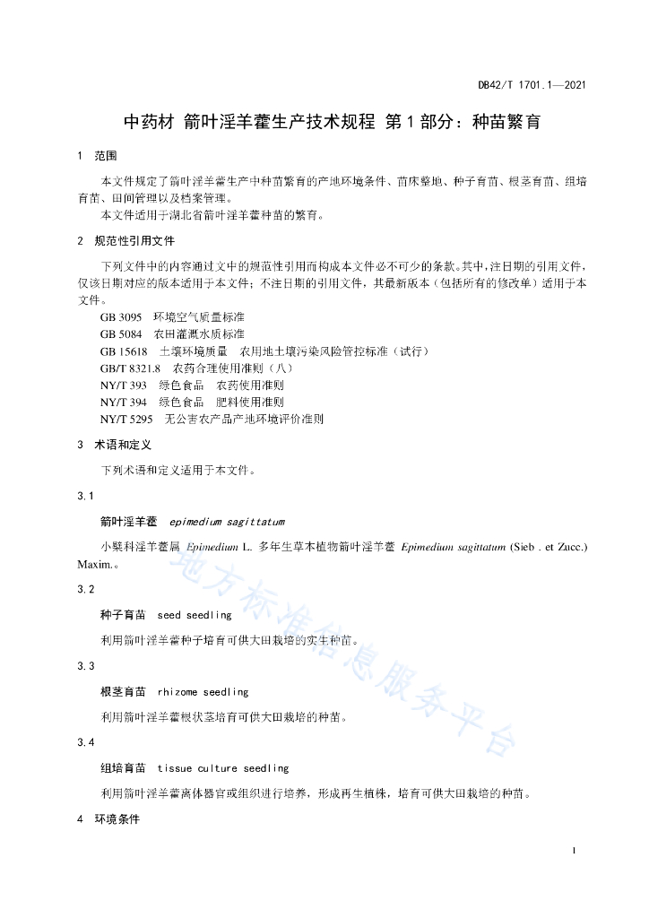 DB42/T 1701.1-2021 中药材 箭叶淫羊藿生产技术规程 第1部分:种苗繁育