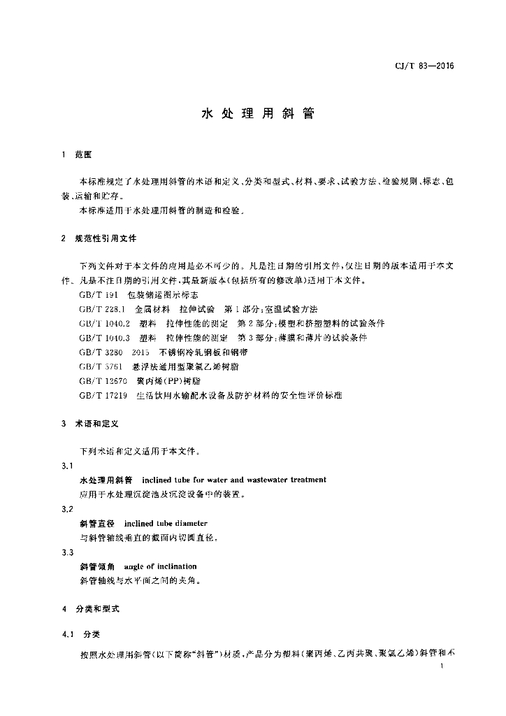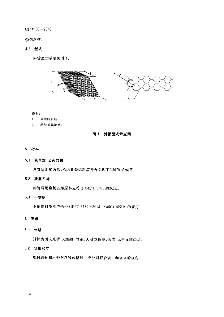 CJ/T 83-2016 水处理用斜管