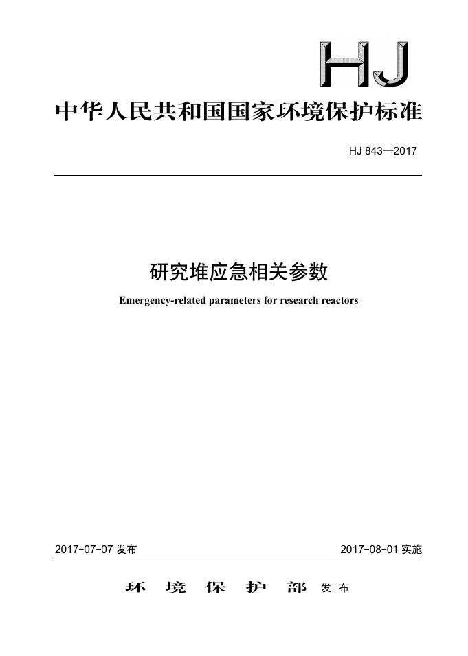 HJ 843-2017 研究堆应急相关参数