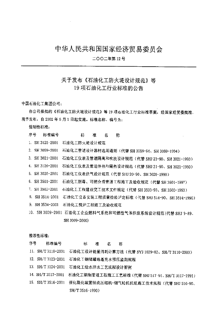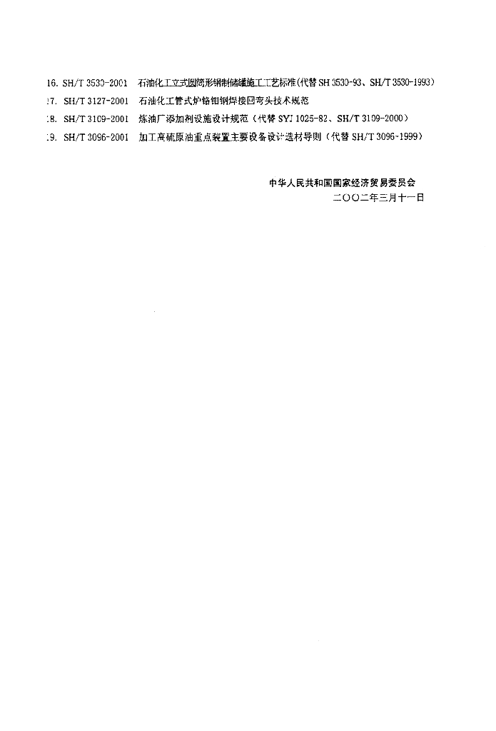 SH 3534-2001 石油化工筑炉工程施工及验收规范