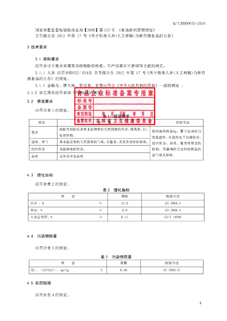 Q/TJBD 0007S-2019 人参金银花代用茶