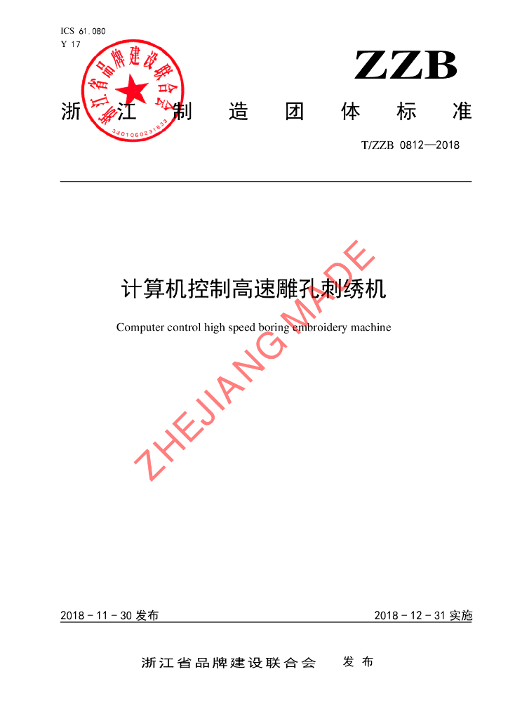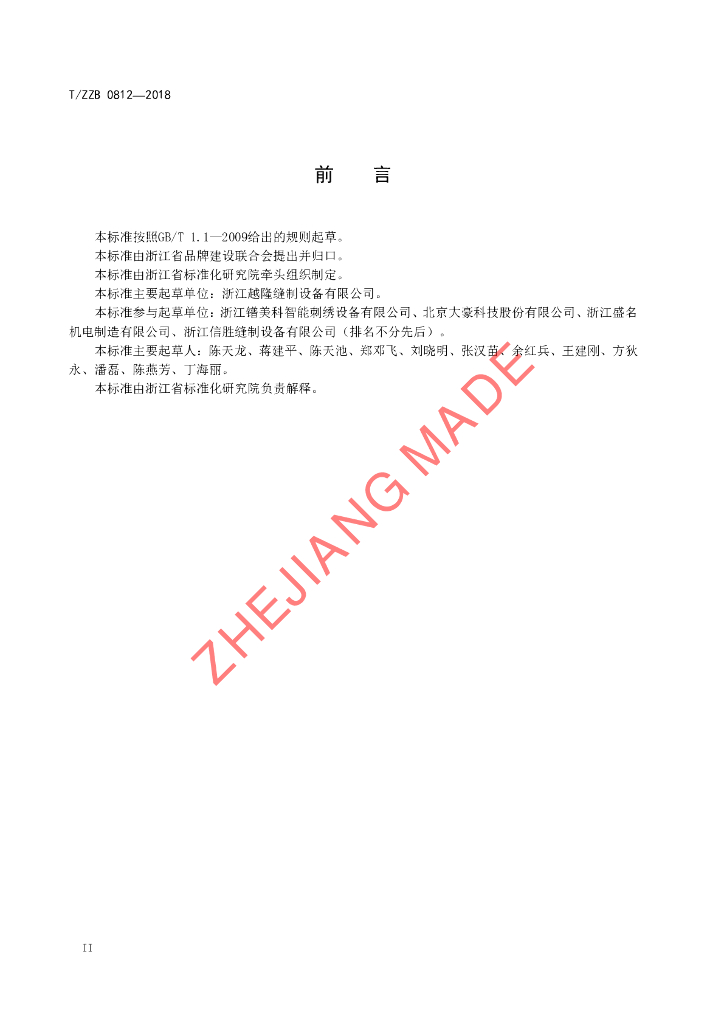 浙江越隆缝制设备有限公司、浙江镨美科智能刺绣设备有限公司、北京大豪科技股份有限公司、浙江盛名机电制造有限公司、浙江信胜缝制设备有限公司