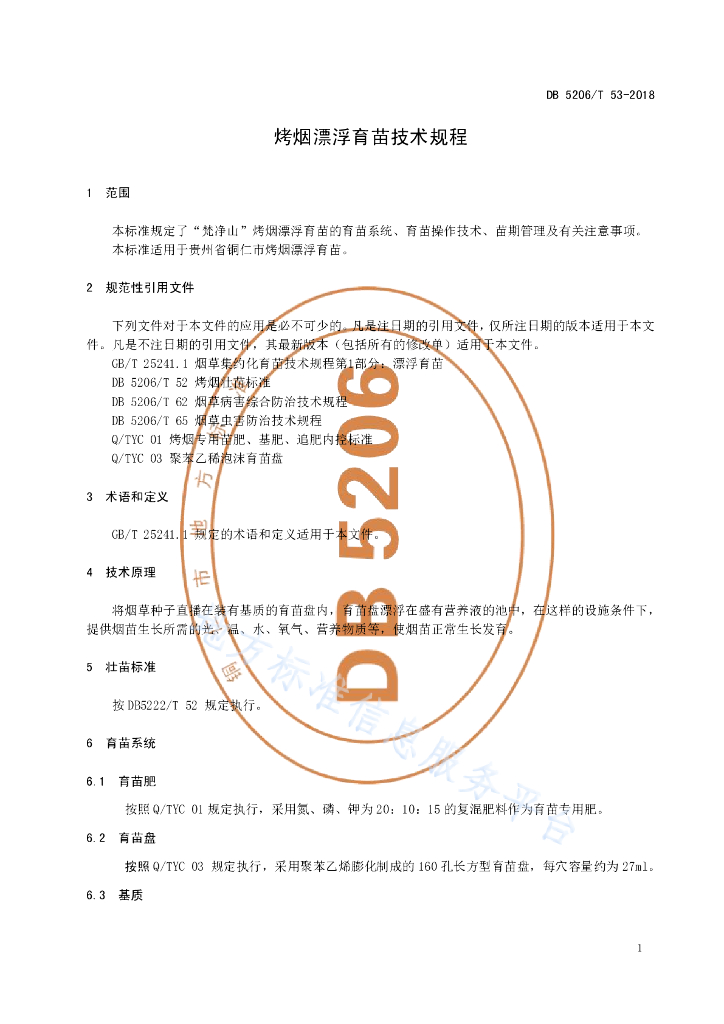 DB5206/T 53-2018 烤烟漂浮育苗技术规程
