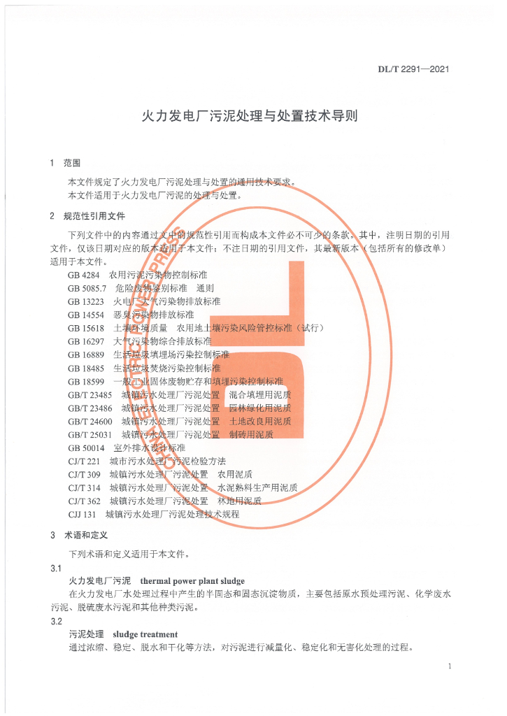 DL/T 2291-2021 火力发电厂污泥处理与处置技术导则