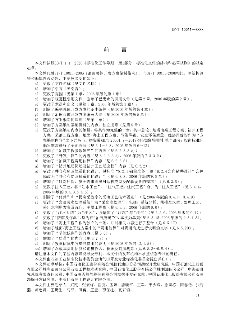 - 提出单位:石油工业标准化技术委员会油气田开发专业标准化委员会