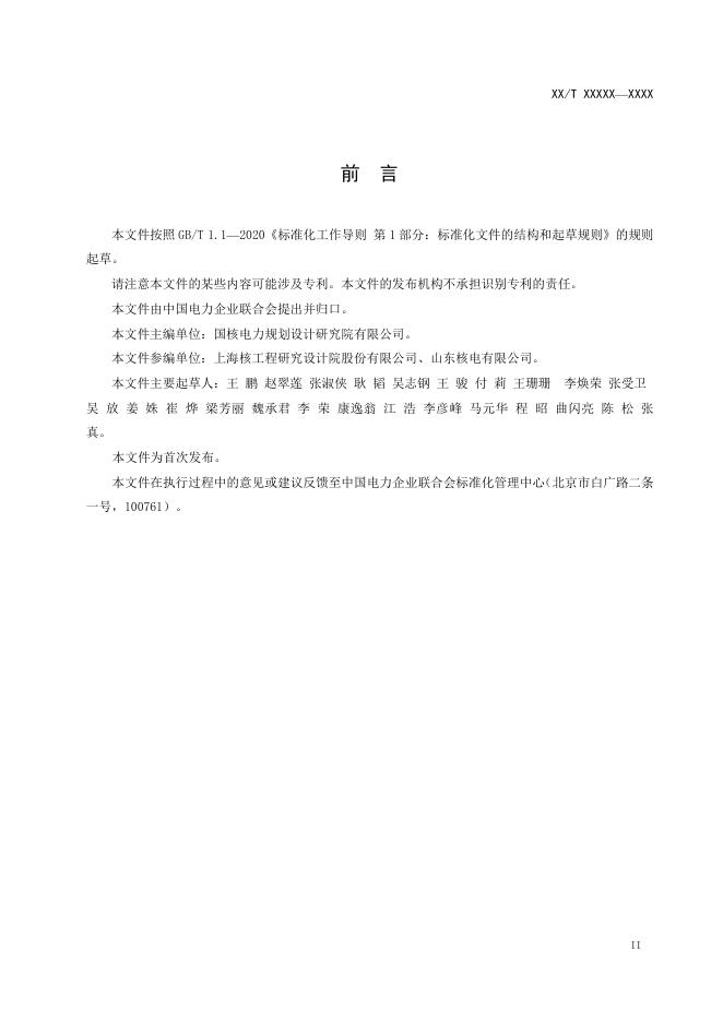 本文件主编单位:国核电力规划设计研究院有限公司。 本文件参编单位:上海核工程研究设计院股份有限公司、山东核电有限公司。