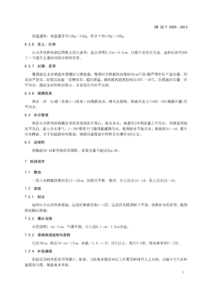 DB32/T 2455-2013 南粳44 机插秧精确定量栽培技术规程