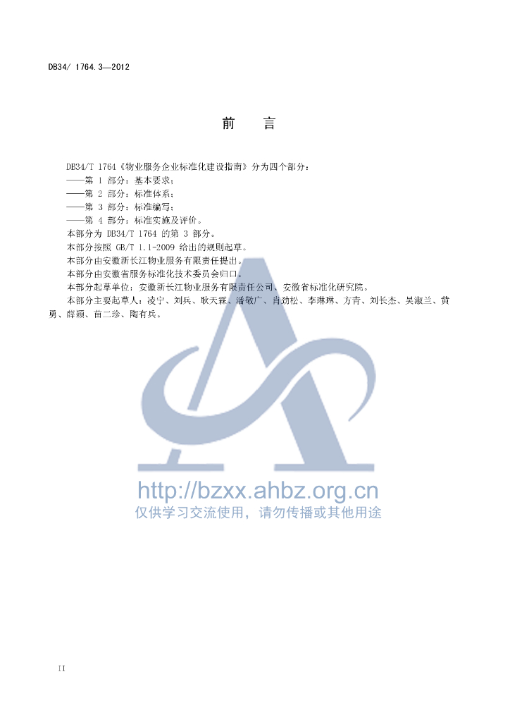 DB34/T 1764.3-2012 物业服务企业标准化建设指南第3部分:标准编写