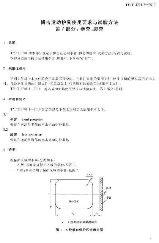 TY/T 3701.7-2019 搏击运动护具使用要求与试验方法 第7部分:拳套、脚套
