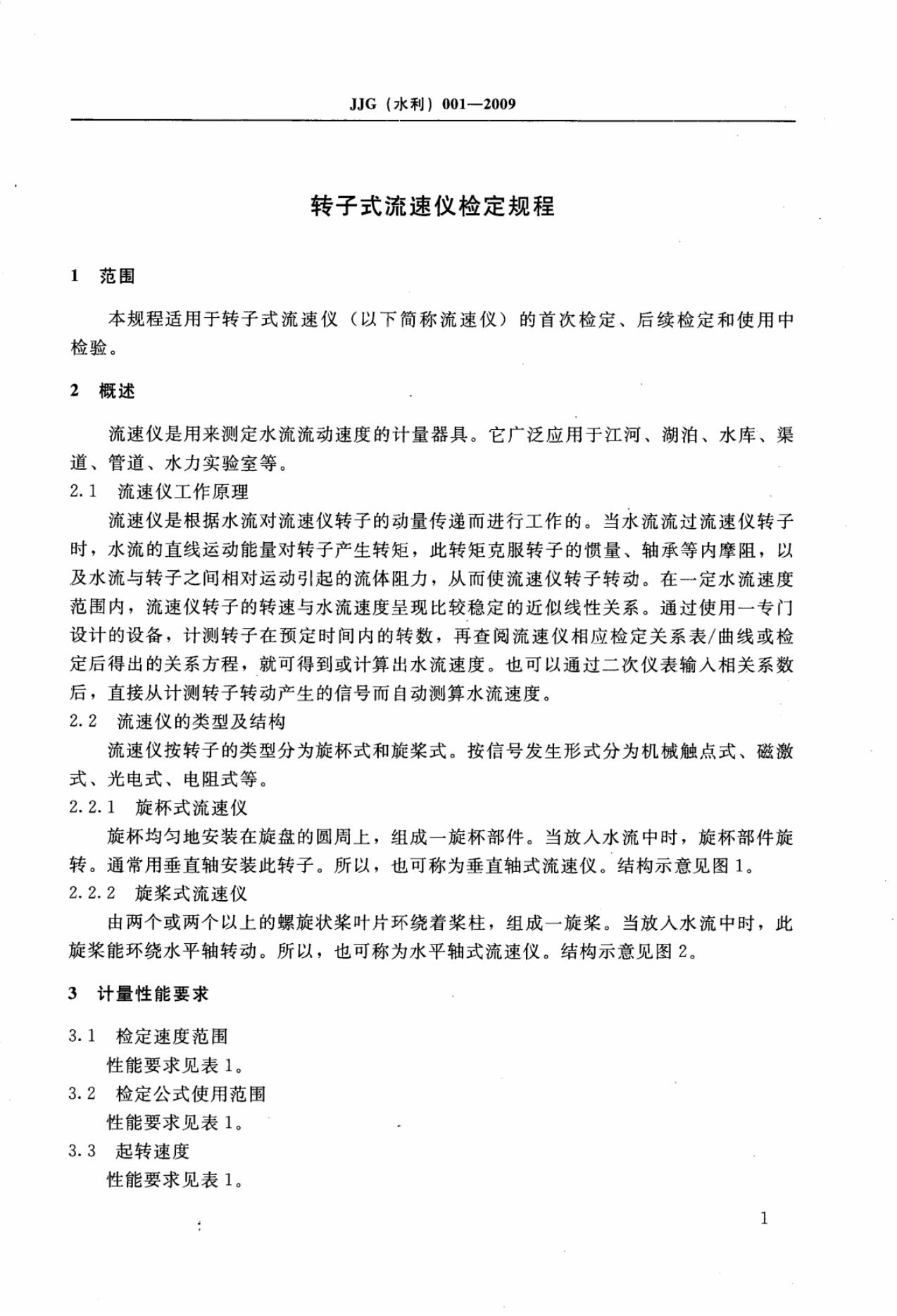 JJG(水利)001-2009 转子式流速仪