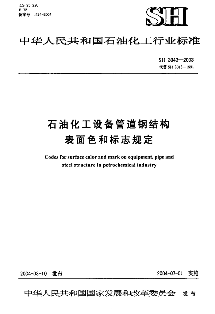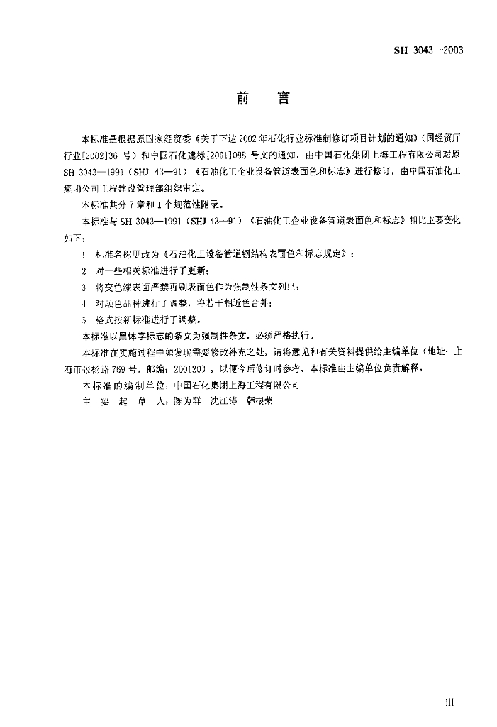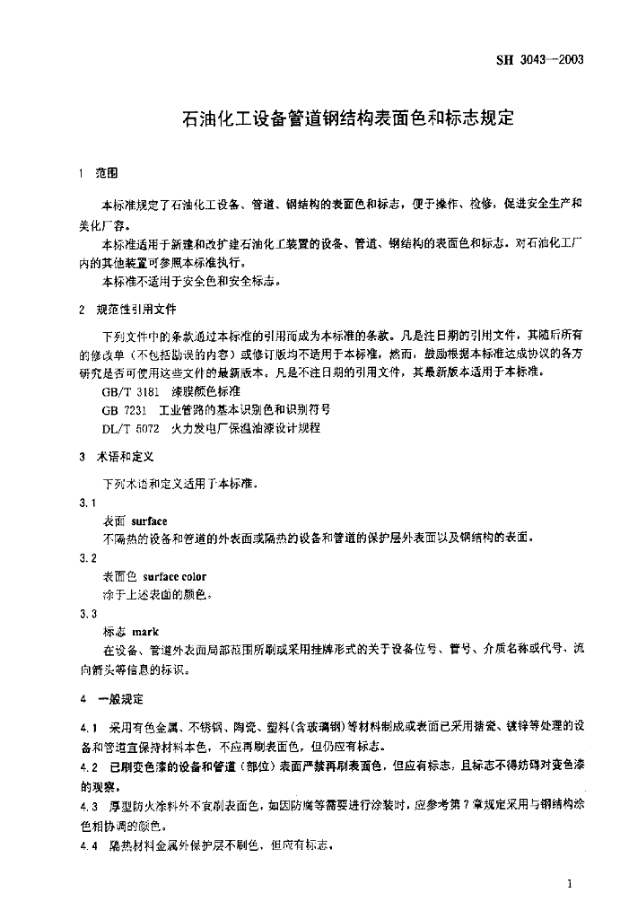 SH 3043-2003 石油化工设备管道钢结构表面色和标志规定
