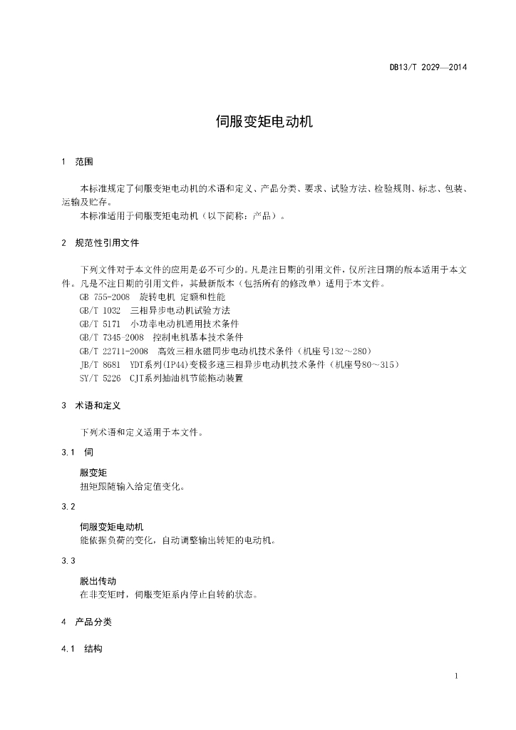 DB13/T 2029-2014 伺服变矩电动机