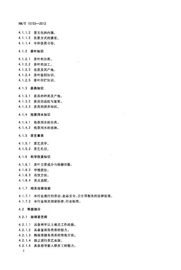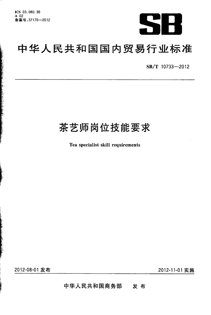SB/T 10733-2012 茶艺师岗位技能要求