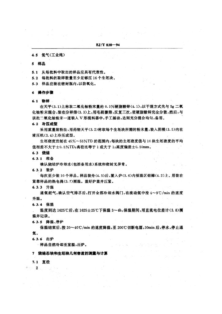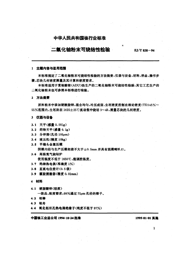 EJ/T 838-1994 二氧化铀粉末可烧结性检验