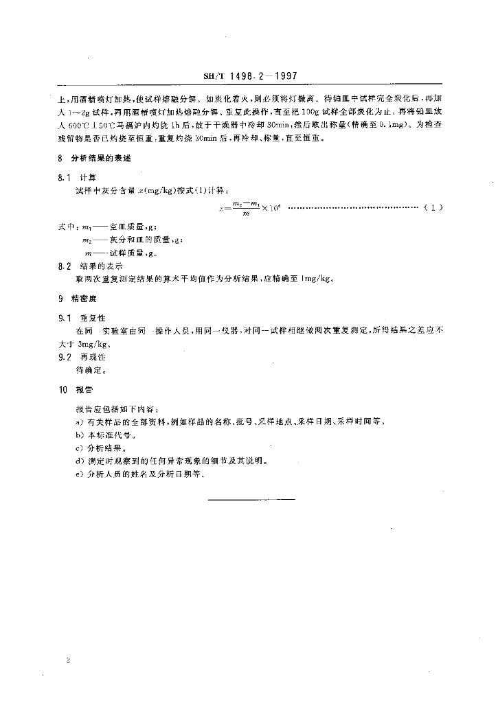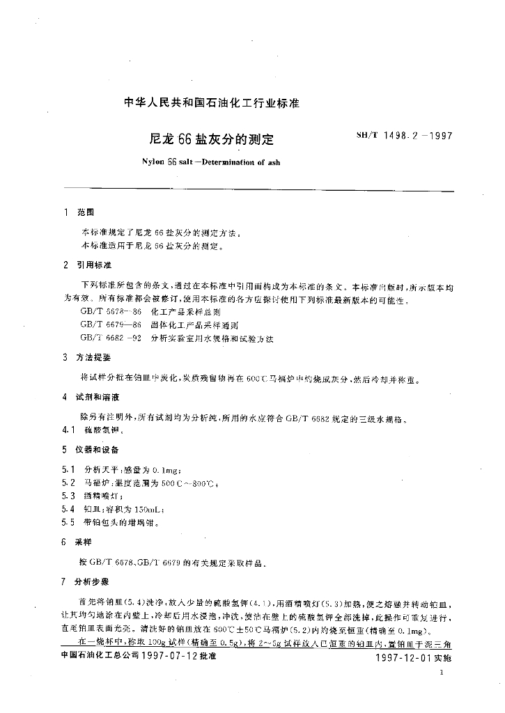 SH/T 1498.2-1997 尼龙66盐灰分的测定
