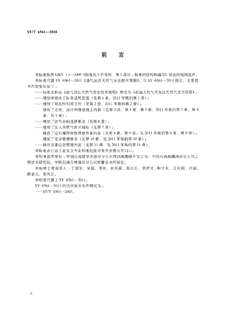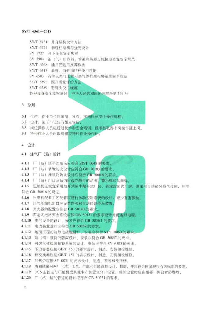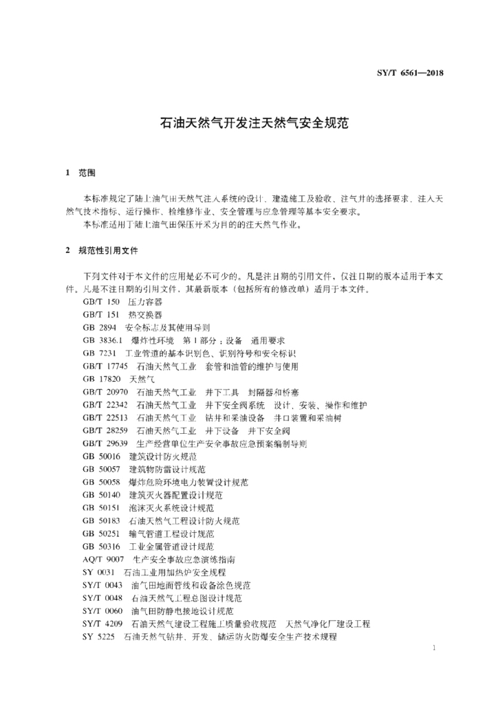 SY/T 6561-2018 石油天然气开发注天然气安全规范