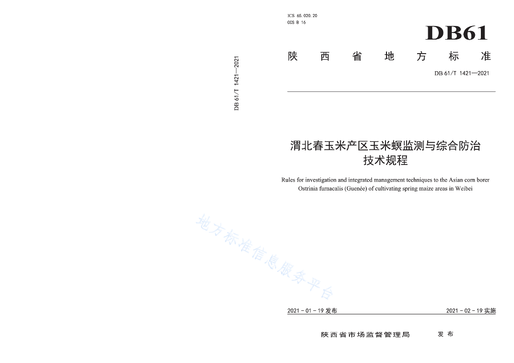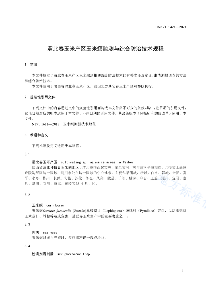 DB61/T 1421-2021 渭北春玉米产区玉米螟监测与综合防治技术规程