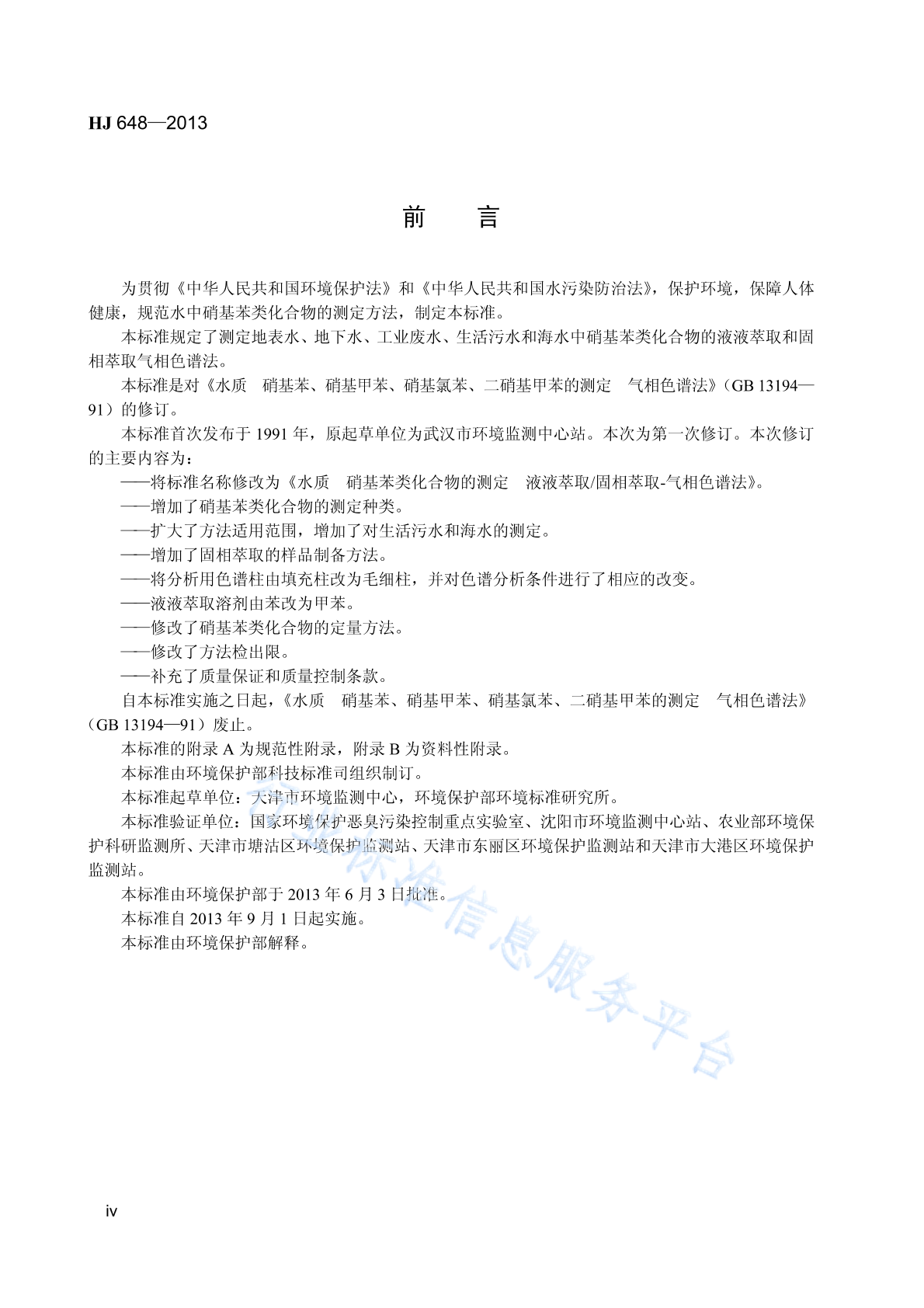 HJ 648-2013 水质 硝基苯类化合物的测定 液液萃取/固相萃取-气相色谱法
