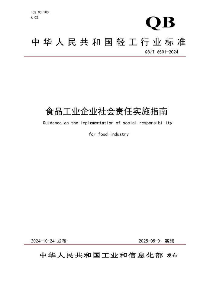 QB/T 6501-2024 食品工业企业社会责任实施指南