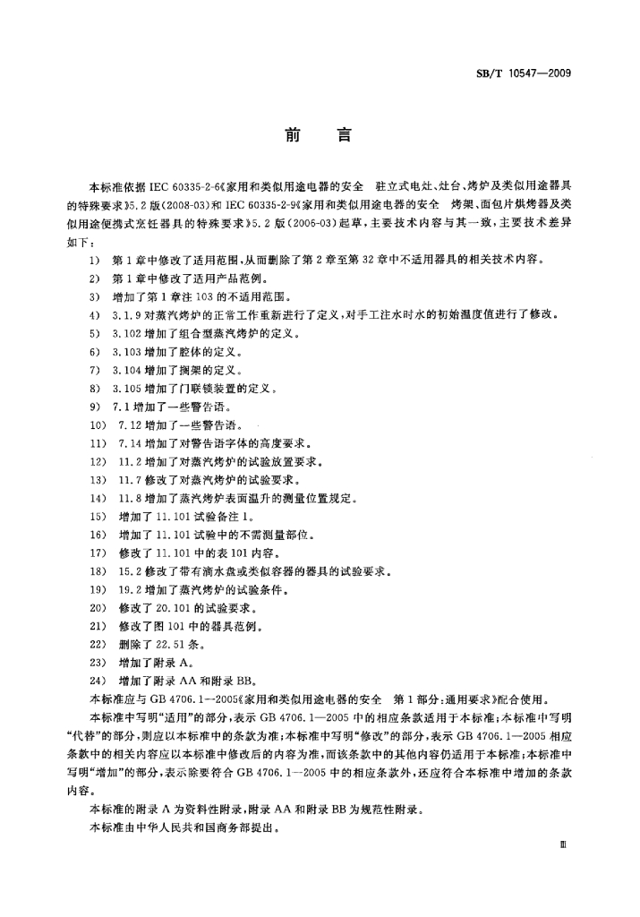 SB/T 10547-2009 家用和类似用途电器的安全蒸汽烤炉,包括组合型蒸汽烤炉的特殊要求