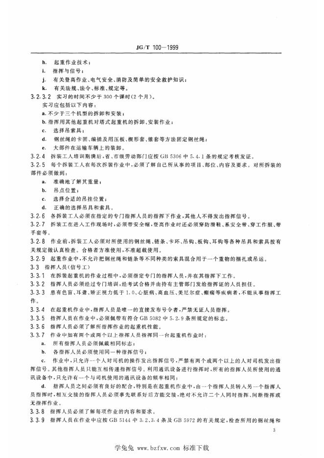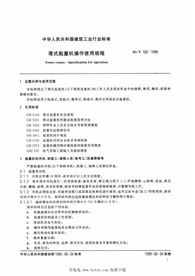 JG/T 100-1999 塔式起重机操作使用规程