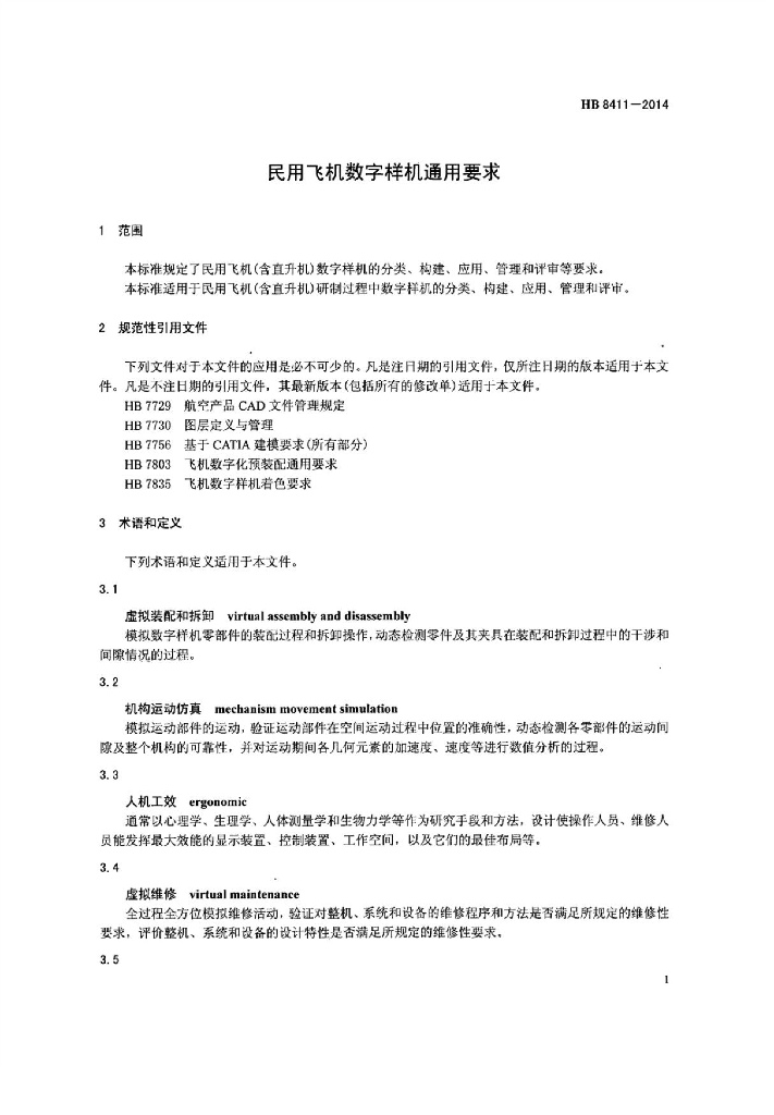 HB 8411-2014 民用飞机数字样机通用要求