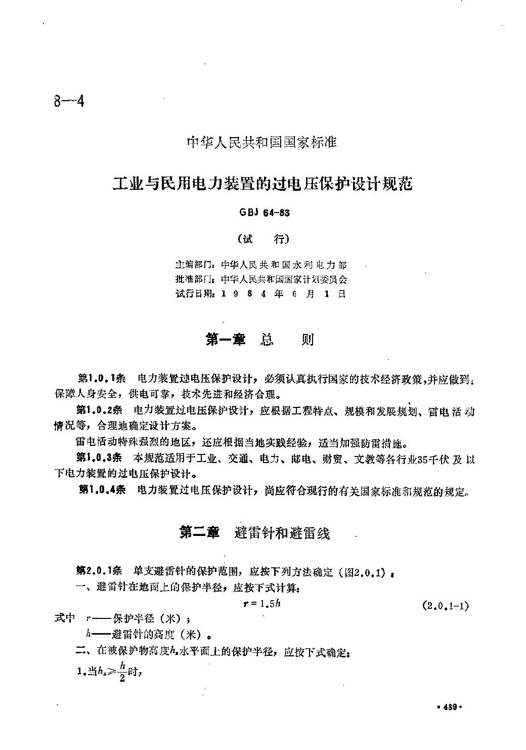 GBJ 64-1983 工业与民用电力装置的过电压保护设计规范