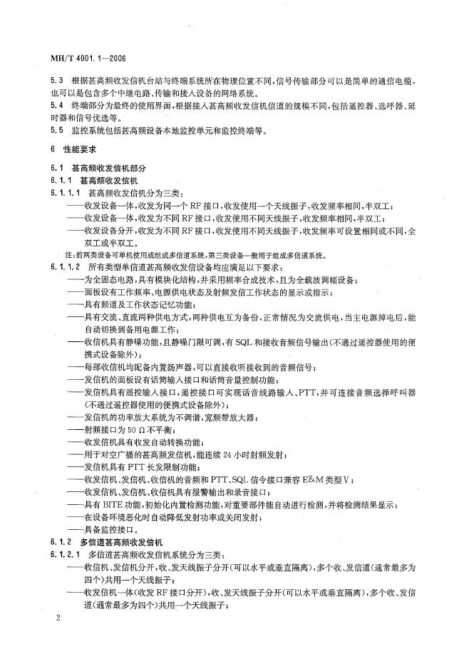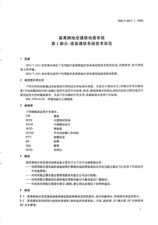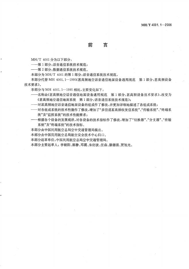 MH/T 4001.1-2006 甚高频地空通信地面系统 第1部分:话音通信系统技术规范